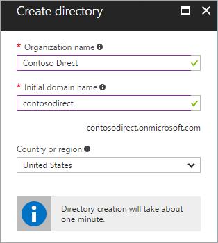 5. Provide an Organization name (12345678) and an Initial domain name (12345678). Then select Create. This will create the directory named