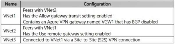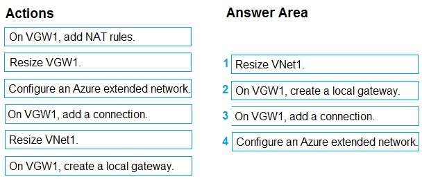 You have an Azure subscription that contains a virtual network named VNet1, an Azure VPN gateway named VGW1, and 100 virtual machines. VNet1 has an IP address space of 10.0.0.0/22. VGW1 uses the VpnGw1 SKU.