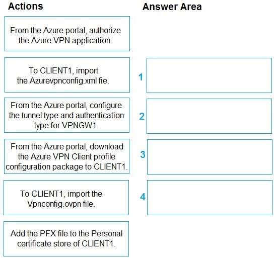 Which four actions should you perform in sequence? To answer, move the appropriate actions from the list of actions to the answer area and arrange them in the correct order.