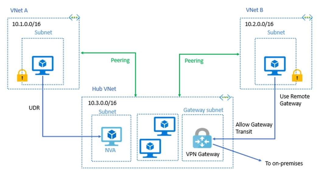 Each virtual network, including a peered virtual network, can have its own gateway. A virtual network can use its gateway to connect to an on-premises network. You can also configure virtual network-to-virtual network connections by using gateways, even for peered virtual networks.