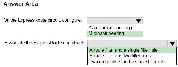 Define route filters and apply them to your ExpressRoute circuit. A route filter is a new resource that lets you select the list of services you plan to consume through Microsoft peering. ExpressRoute routers only send the list of prefixes that belong to the services identified in the route filter.