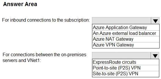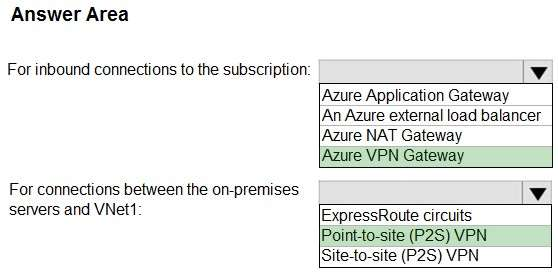 For the connections beetween the on-premises servers and VNet1: