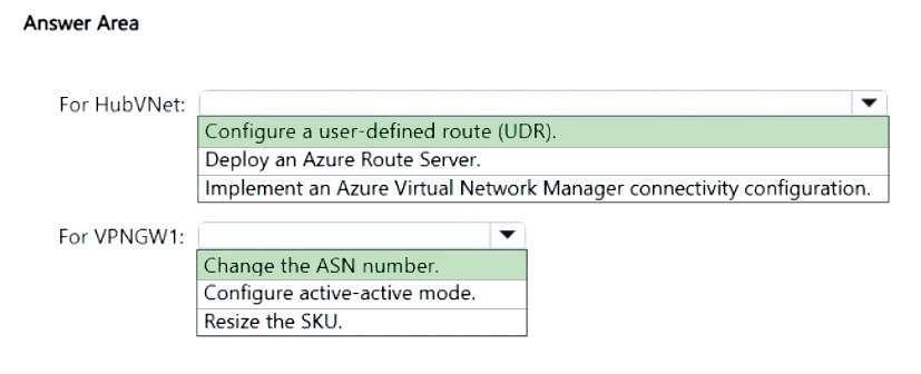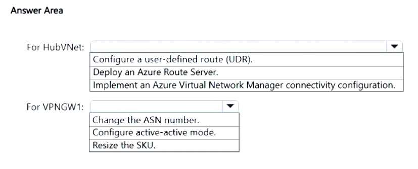 Configuration: Active-passive resiliency, in Generation 2, VpnGw3 SKU that has the default ASN connected to SFONet.