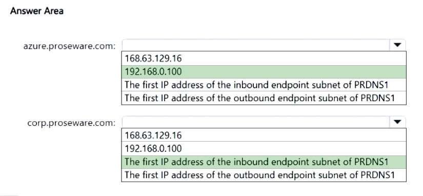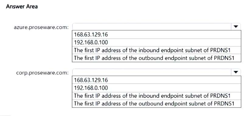 Box 2: The first IP address of the inbound endpoint subnet of PRDNS1 Corp.proseware.com
