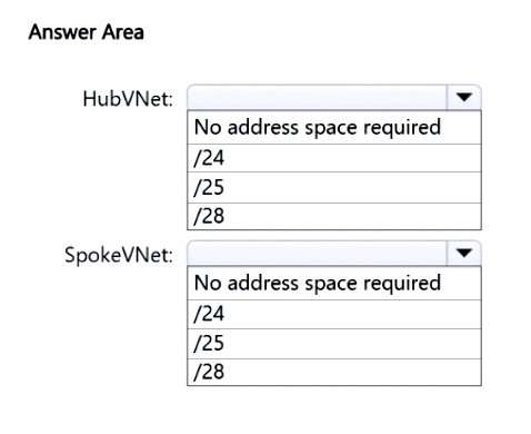 You need to identify which IP address space to allocate for the planned deployment of PRDNS1 to HubVNet and SpokeVNet. The solution must meet the general requirements.