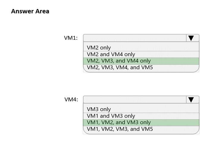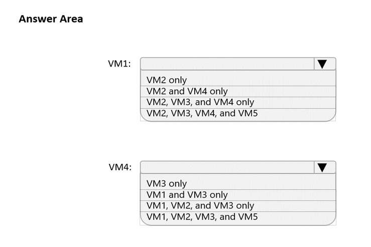 Which virtual machines can VM1 and VM4 ping successfully? To answer, select the appropriate options in the answer area.