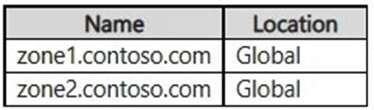 Zone2.contoso.com is not linked to any virtual networks. Therefore, no VMs are able to resolve names in the zone.