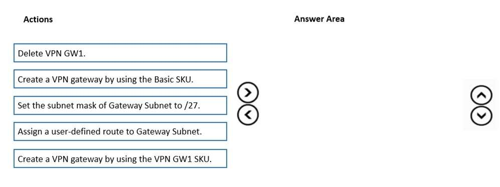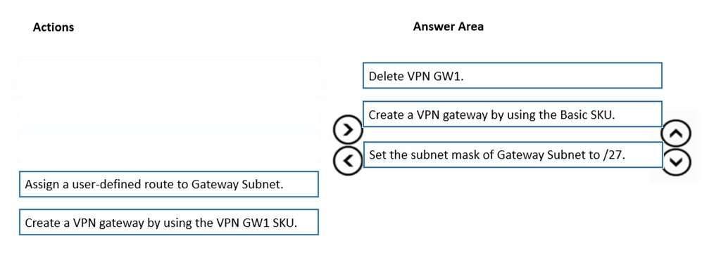 Which three actions should you perform in sequence for Vnet1? To answer, move the appropriate actions from the list of actions to the answer area and arrange them in the correct order.