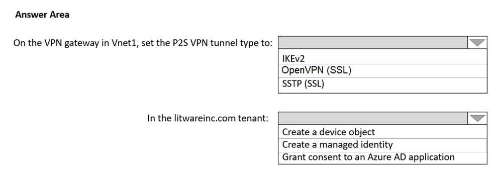 Users must be able to connect to Vnet1 by using a Point-to-Site (P2S) VPN when working remotely.