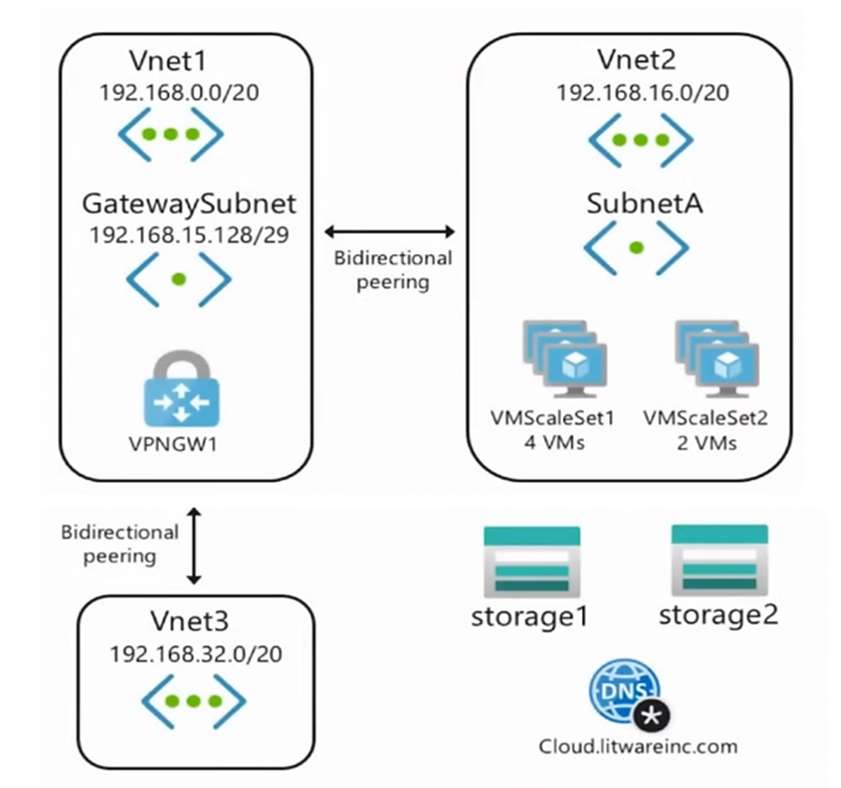 You need to connect Vnet2 and Vnet3. The solution must meet the virtual networking requirements and the business requirements.