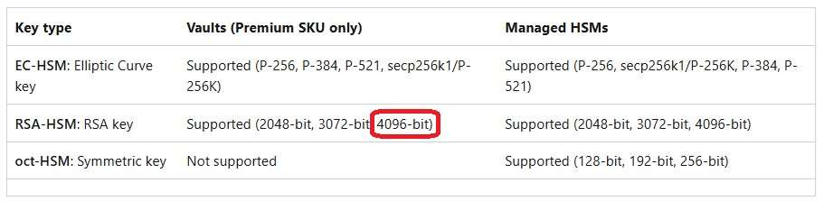 Key Vault Premium and Standard support RSA and EC keys. Managed HSM supports RSA, EC, and symmetric keys.