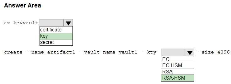 You need to ensure that you can encrypt Azure Disk Encryption artifacts before they are written to Vault1. The solution must provide the highest level of encryption.
