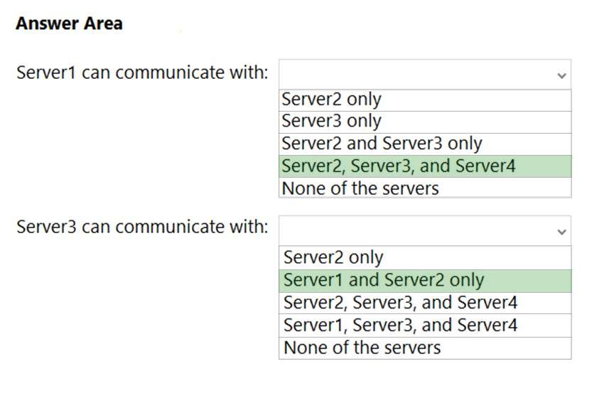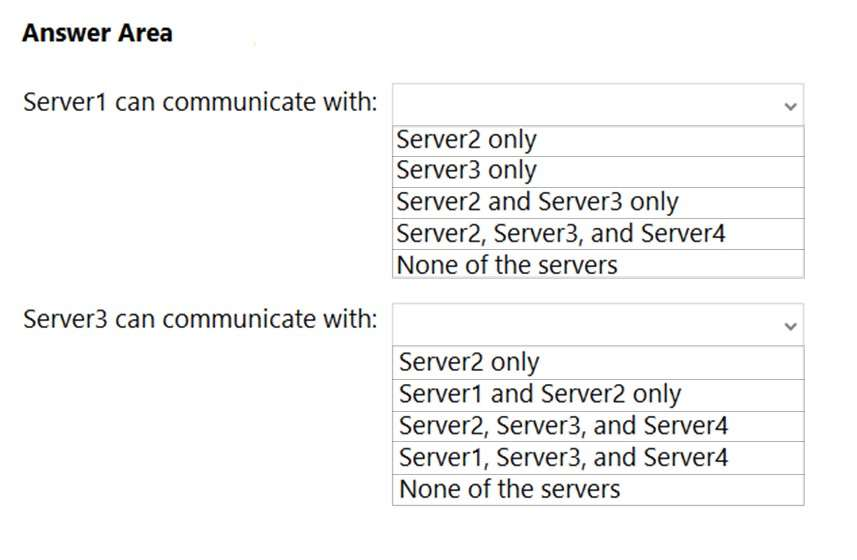By using Windows Defender Firewall with Advanced Security, the servers have isolation connection security rules configured as shown in the following table.