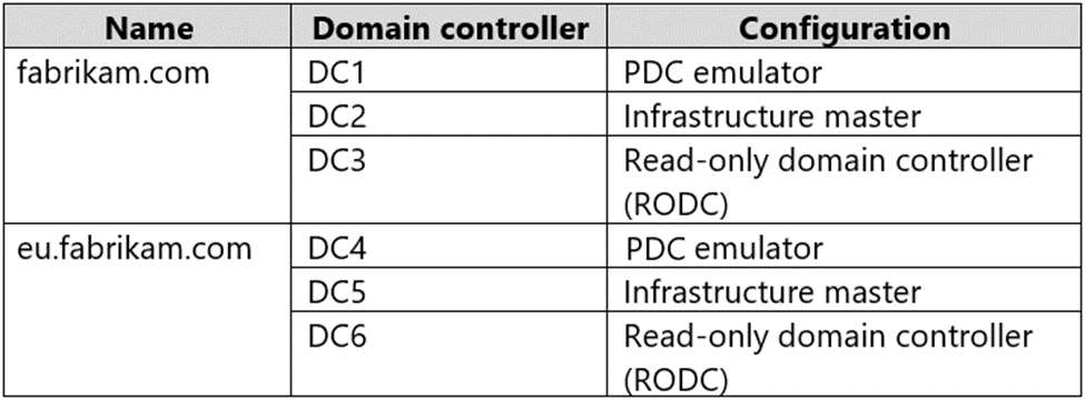 Your network contains an Active Directory Domain Services (AD DS) forest. The forest contains the domains shown in the following table.