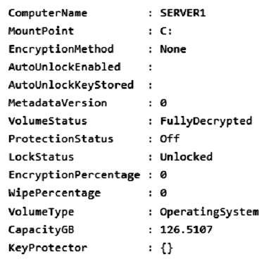 You run Get-BitLockerVolume -MountPoint C,D | fl *, which generates the following output.