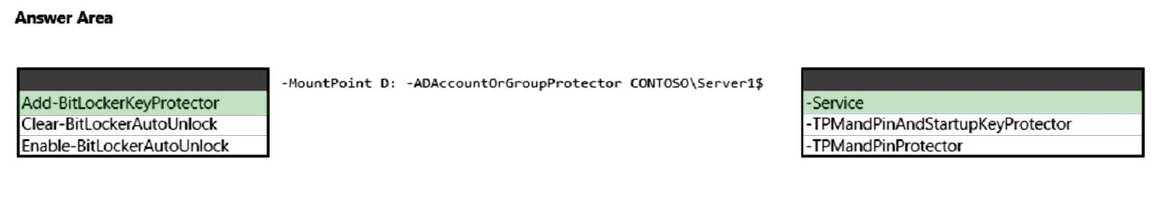 You need to ensure that volume D will be unlocked automatically when Server1 restarts.