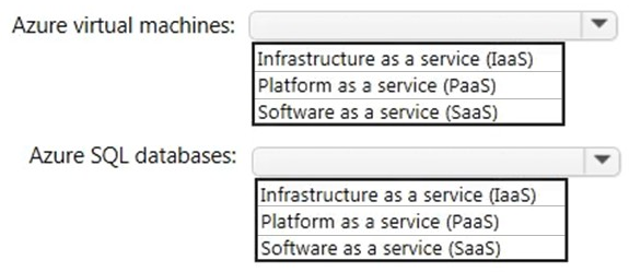 Which cloud deployment solution is used for Azure virtual machines and Azure SQL databases? To answer, select the appropriate options in the answer area.