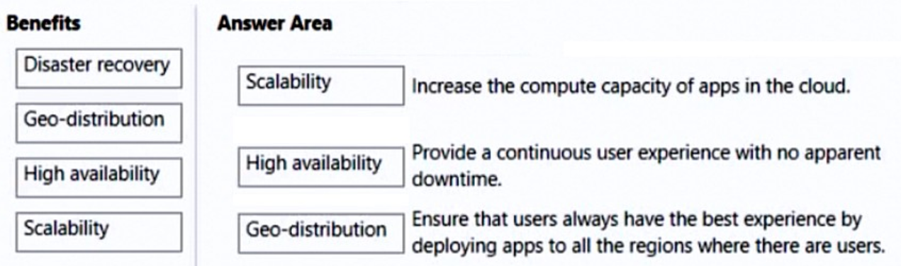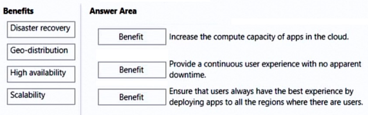 To answer, drag the appropriate benefit from the column on the left to its description on the right. Each benefit may be used once, more than once, or not at all.