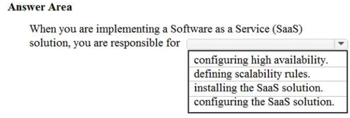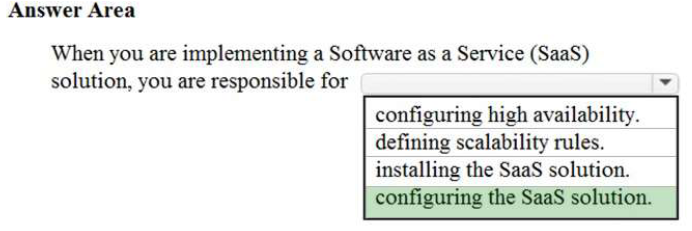 When you are implementing a Software as a Service (SaaS) solution, you are responsible for configuring the SaaS solution. Everything else is managed by the cloud provider.