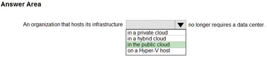 A public cloud is hosted externally, for example, in Microsoft Azure. An organization that hosts its infrastructure in a public cloud can close its data center.