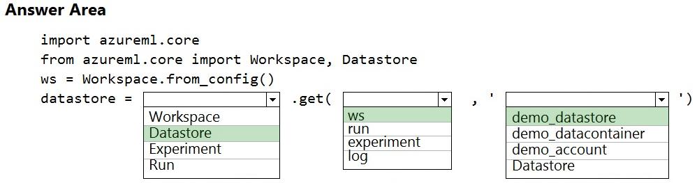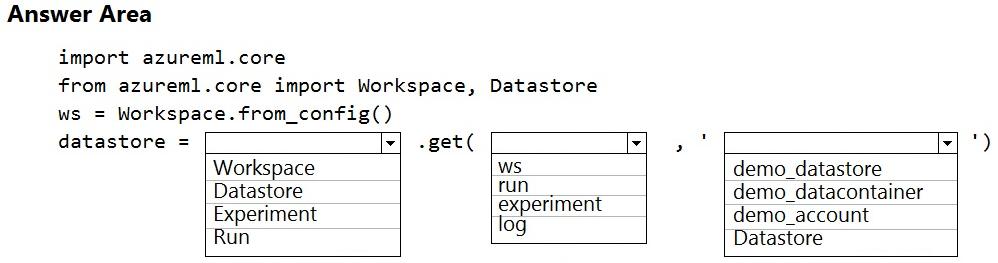 To get a specific datastore registered in the current workspace, use the get() static method on the Datastore class: