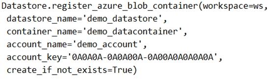 A coworker registers a datastore in a Machine Learning services workspace by using the following code: