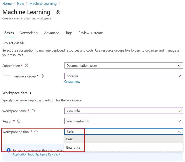 4. Navigate to Azure Machine Learning studio and create a workspace.