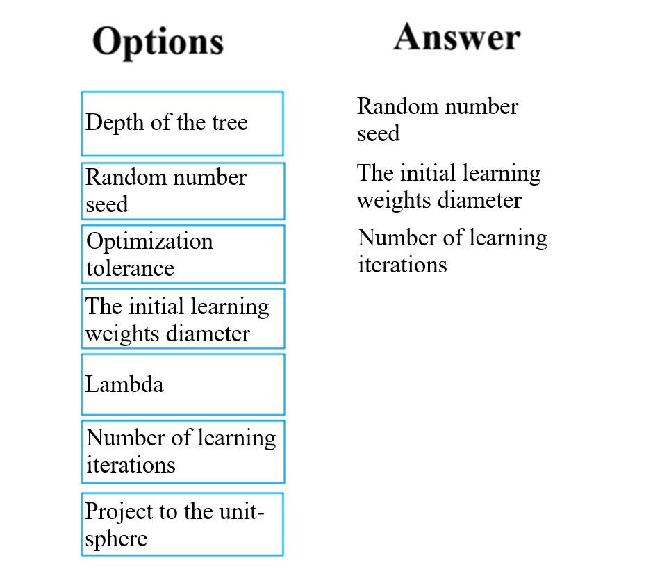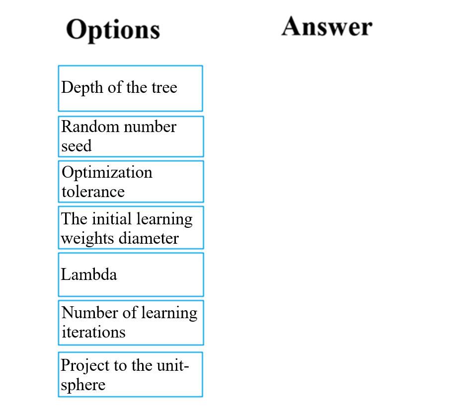 Which of the following are valid parameters for the Two-Class Neural Network module? Answer by dragging the correct options from the list to the answer area.