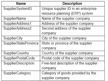 The supplier data contains the following columns.