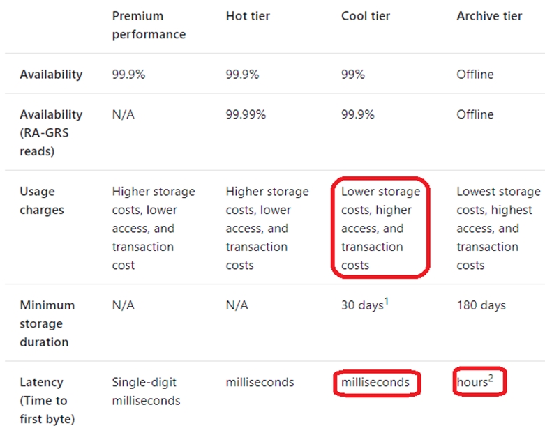 https://docs.microsoft.com/en-us/azure/storage/blobs/storage-blob-storage-tiers