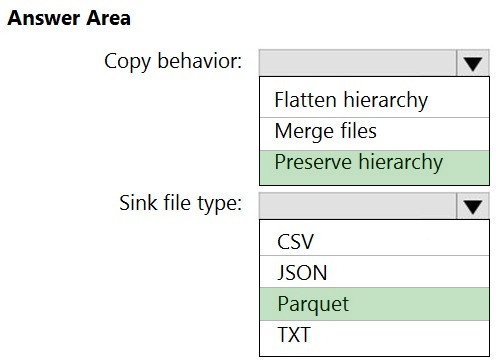 How should you configure the Data Factory copy activity? To answer, select the appropriate options in the answer area.