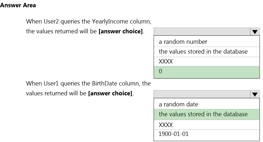 User1 executes a query on the database, and the query returns the results shown in the following exhibit.