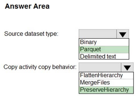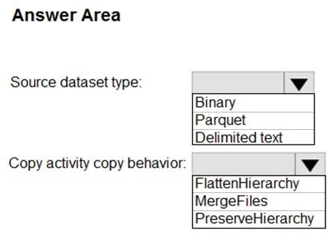 How should you configure the copy activity? To answer, select the appropriate options in the answer area.