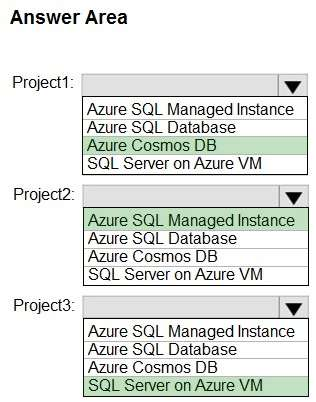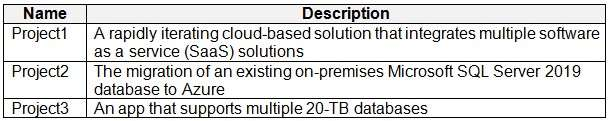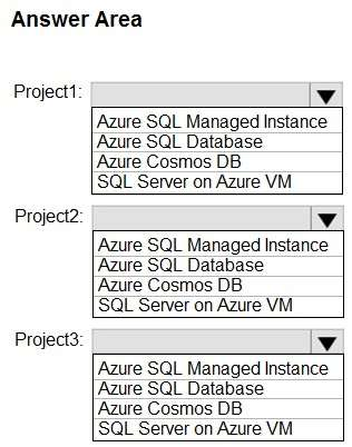 You need to recommend an Azure database solution for each project. The solution must meet the following requirements: