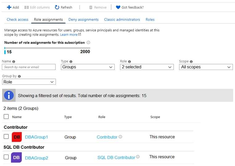 Contributor - Grants full access to manage all resources, but does not allow you to assign roles in Azure RBAC SQL DB Contributor - Lets you manage SQL databases, but not access to them. Also, you can't manage their security-related policies or their parent SQL servers.