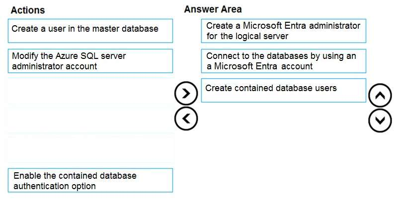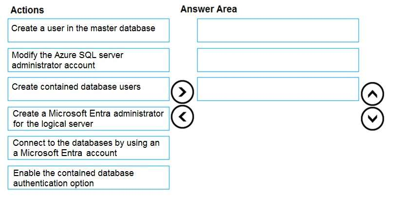 Which actions should you perform in sequence? To answer, drag the appropriate actions to the correct order. Each action may be used once, more than once, or not at all. You may need to drag the split bar between panes or scroll to view content.