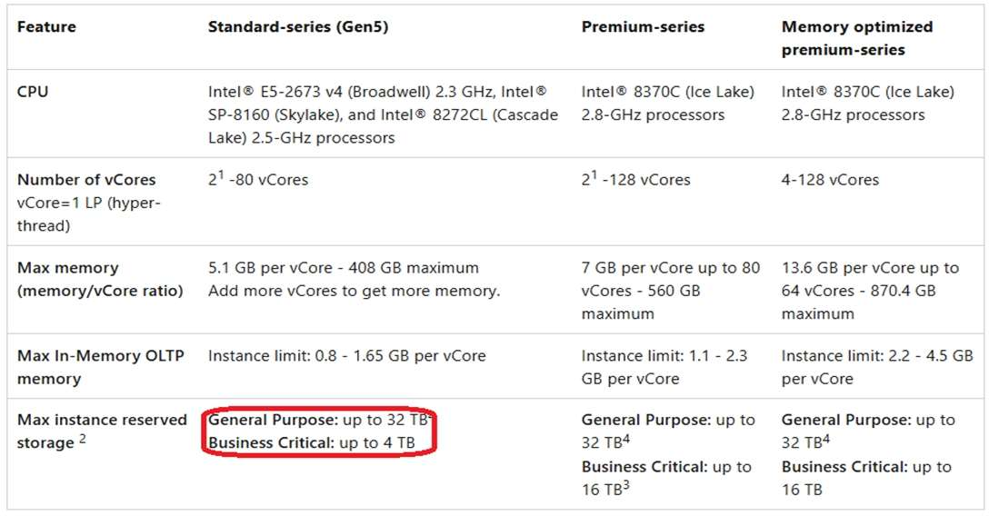 Azure SQL Managed Instance and Azure SQL Database Hyperscale both support 10 TB of storage. Azure SQL Managed Instance can store up to 32 TB, while Hyperscale can scale to 100 TB.