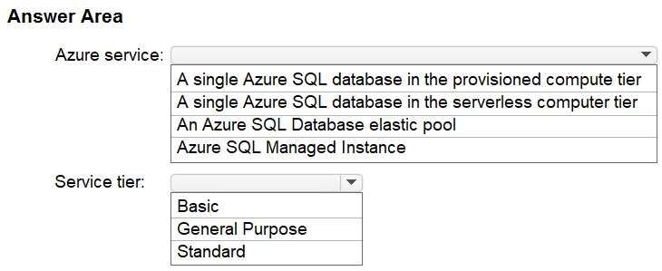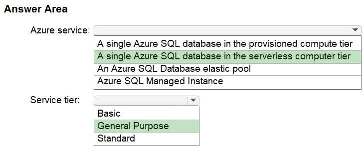 Box 1: A single Azure SQL database in the serverless computer tier Automatically scales compute based on the workload demand.