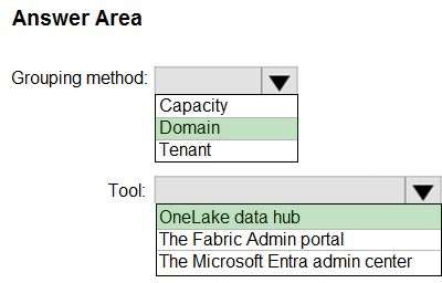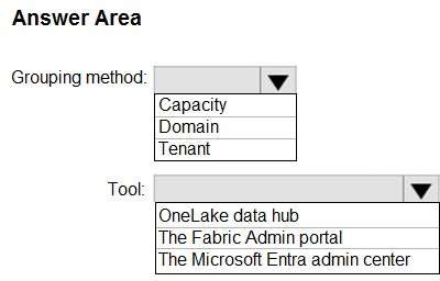 *-> All the workspaces for the Sales division and the Research division must support all Fabric experiences. The Research division workspaces must use a dedicated, on-demand capacity that has per-minute billing. The Research division workspaces must be grouped together logically to support OneLake data hub filtering based on the department name.