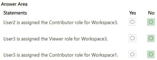 User2 is assigned the Contributor role for Workspace3 - No