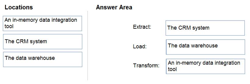 Your company plans to load data from a customer relationship management (CRM) system to a data warehouse by using an extract, load, and transform (ELT) process.