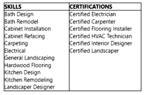A spreadsheet tracks the skills and certifications earned by each internal employee. They are:
