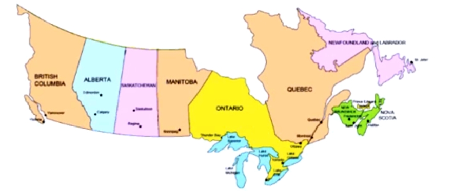 Canadian regions are broken down by province where Litware, Inc. either has stores or provides services: