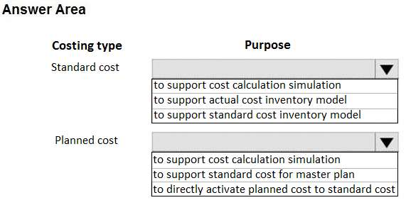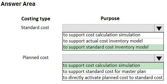 For which purpose should you use each costing type? To answer, select the appropriate options in the answer area.