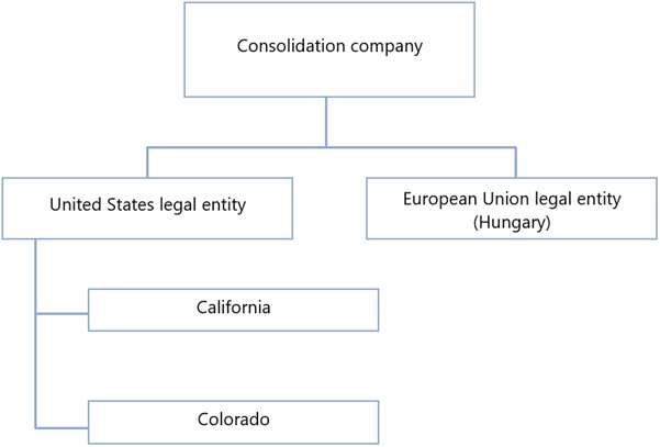 All legal entities roll up to a financial consolidation company.
