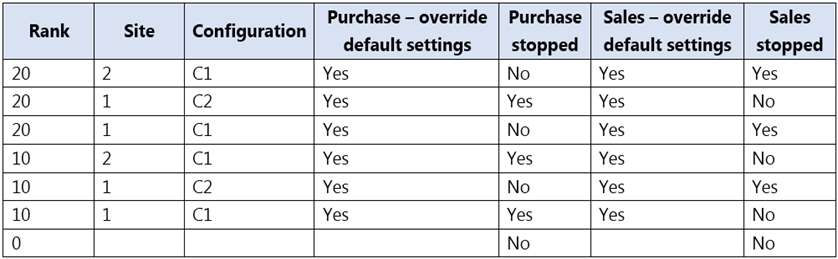 A company uses Dynamics 365 Supply Chain Management for purchasing and sales operations across three different sites.