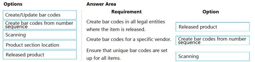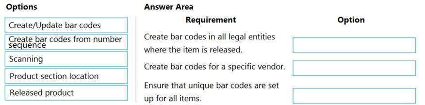 Which option should you use for each requirement? To answer, drag the appropriate options to the correct requirements. Each option may be used once, more than once, or not at all. You may need to drag the split bar between panes or scroll to view content.