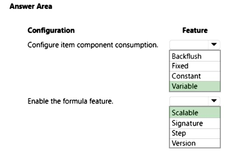 The Scalable feature is available only if all the item components in the formula are set to Variable consumption. The feature isn't available if item components are set to Fixed consumption or Step consumption.
