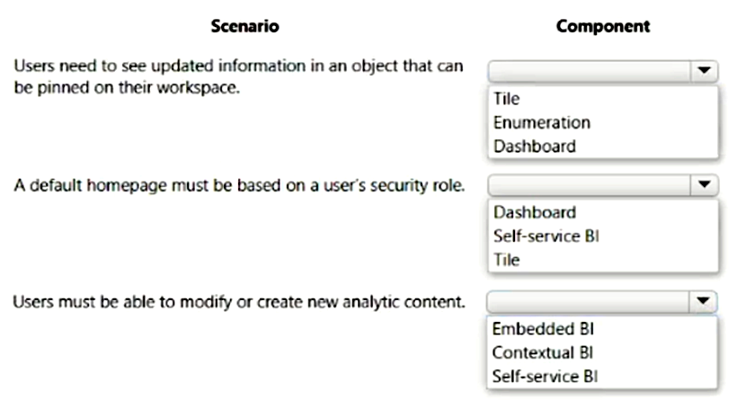 Which component should you use for each scenario? To answer, select the appropriate options in the answer area.
