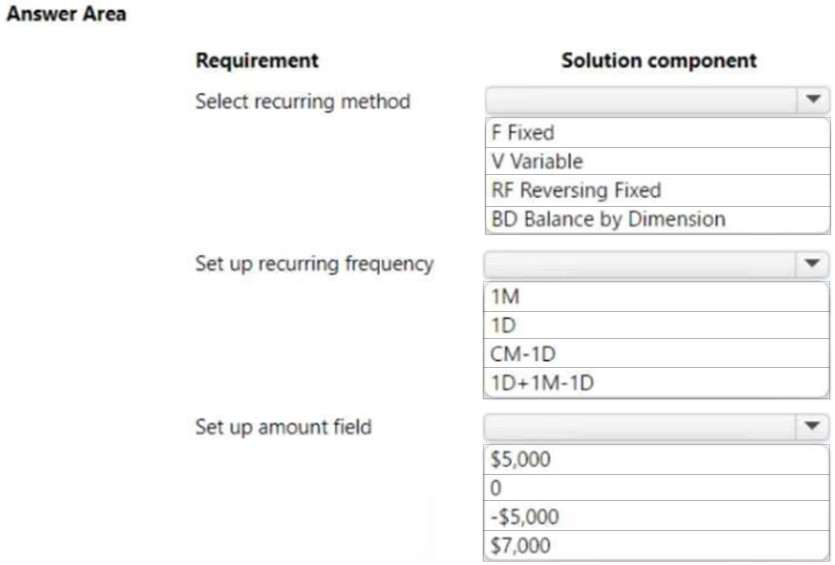 How should you configure recurring general journals? To answer, select the appropriate options in the answer area.